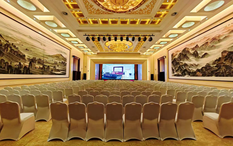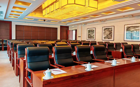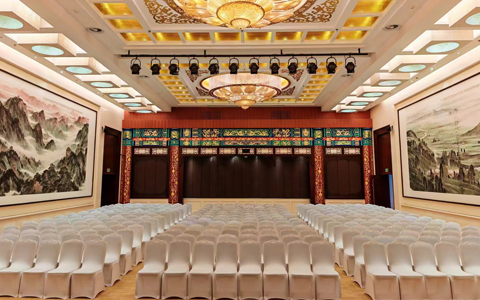 文昌閣,是會議(yì)區最大(dà)的會議(yì)室。文昌閣可(kě)以容納300人(rén),可(kě)以同聲傳遞四國(guó)語言,各種現代化的會議(yì)設施一應俱全。兩邊的國(guó)畫(huà)一幅是畫(huà)家呂元忠畫(huà)的承德金山(shān)嶺長城(chéng)。另一幅是呂元忠和丁福林合作(zuò)畫(huà)的承德木蘭圍場風(fēng)光(guāng)。  賞雙塔之奇、享帝王之尊,熱(rè)情好客的行宮人(rén)會爲來(lái)到這裡(lǐ)的每一位尊貴客人(rén)提供溫馨細微的服務。